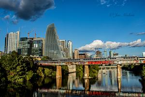 A train passing over the river one evening in Austin, Tx.