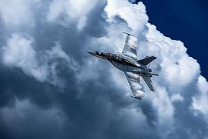 F-18 Super Hornet high speed pass through the clouds.