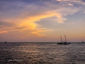 Sailing on a catamaran off the coast of Key West, Florida watching the sunset.